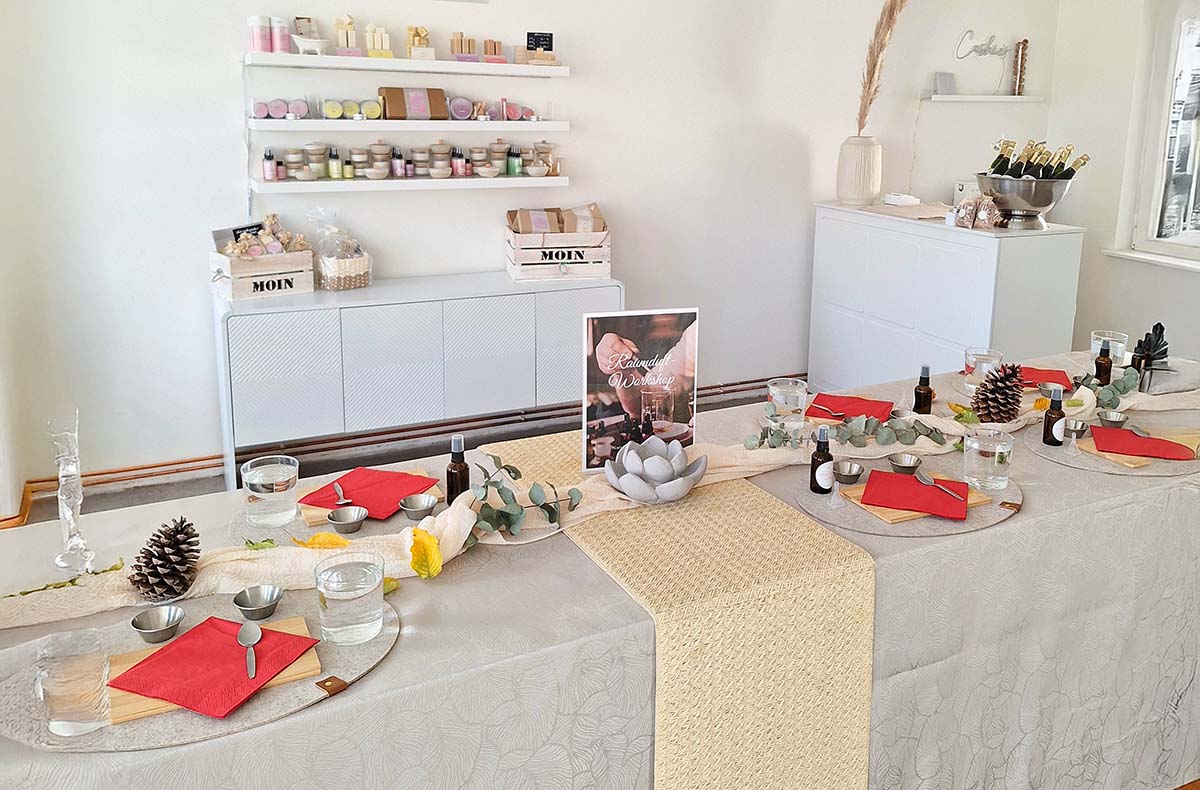 Im charmanten Hamburg-Eimsbüttel erwartet Dich der Raumduft Workshop. Erwecke Deine Sinne. In entspannter Atmosphäre lernst Du, wie Du Deinen ganz persönlichen Raumduft aus naturreinen ätherischen Ölen kreierst. Jeder Duft erzählt eine Geschichte – und Deine steht im Mittelpunkt. Untermalt von sanfter Musik und begleitet von einem Gin Tonic entfaltet sich ein einzigartiges Sinneserlebnis. Egal ob Du zum ersten Mal ätherische Öle verwendest oder schon Erfahrung hast – hier zählt Deine Intuition. Tausche Dich mit anderen Duftliebhabern aus, finde Dein Aroma und nimm ein selbstgemachtes Spray mit nach Hause. Lass Deinen Geruchssinn tanzen – buche jetzt Deinen Platz im Raumduft Workshop in Hamburg!