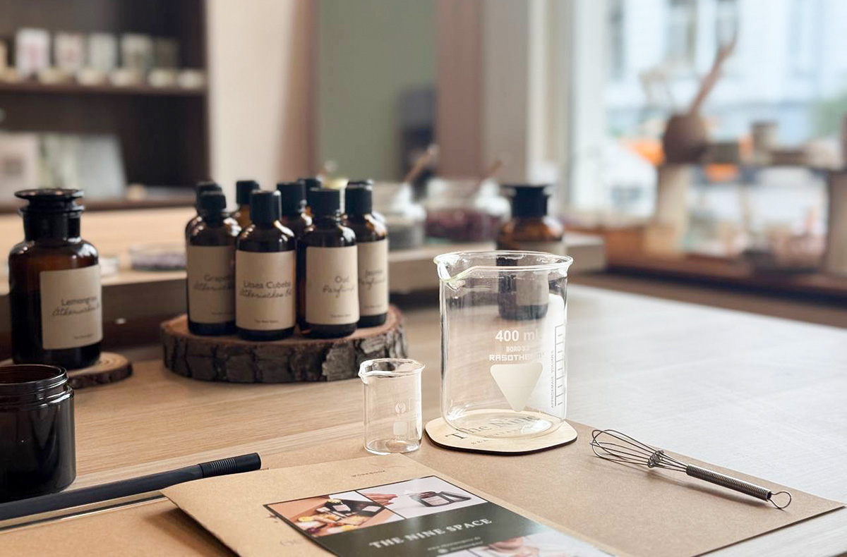 Ein Raumduft Workshop bei The Nine Space in Hannover-List schenkt Dir einen besonders achtsamen Moment voller Inspiration. Inmitten einer liebevoll gestalteten Umgebung mit warmem Licht und natürlichen Elementen komponierst Du in etwa 1 bis 1,5 Stunden Deinen ganz persönlichen Raumduft – hochwertig, vegan und frei von festen Vorgaben. Du wählst aus erlesenen Duftölen Deinen Favoriten, kombinierst sie nach Deinem Gespür und füllst Deine fertige Kreation in einen stilvollen Flakon mit Rattanstäbchen. Begleitet wird die Zeit von kleinen Leckereien und einer ruhigen Atmosphäre, die Raum zum Genießen lässt. Lass Dich von diesem Raumduft DIY inspirieren – Deine Sinne werden es Dir danken.