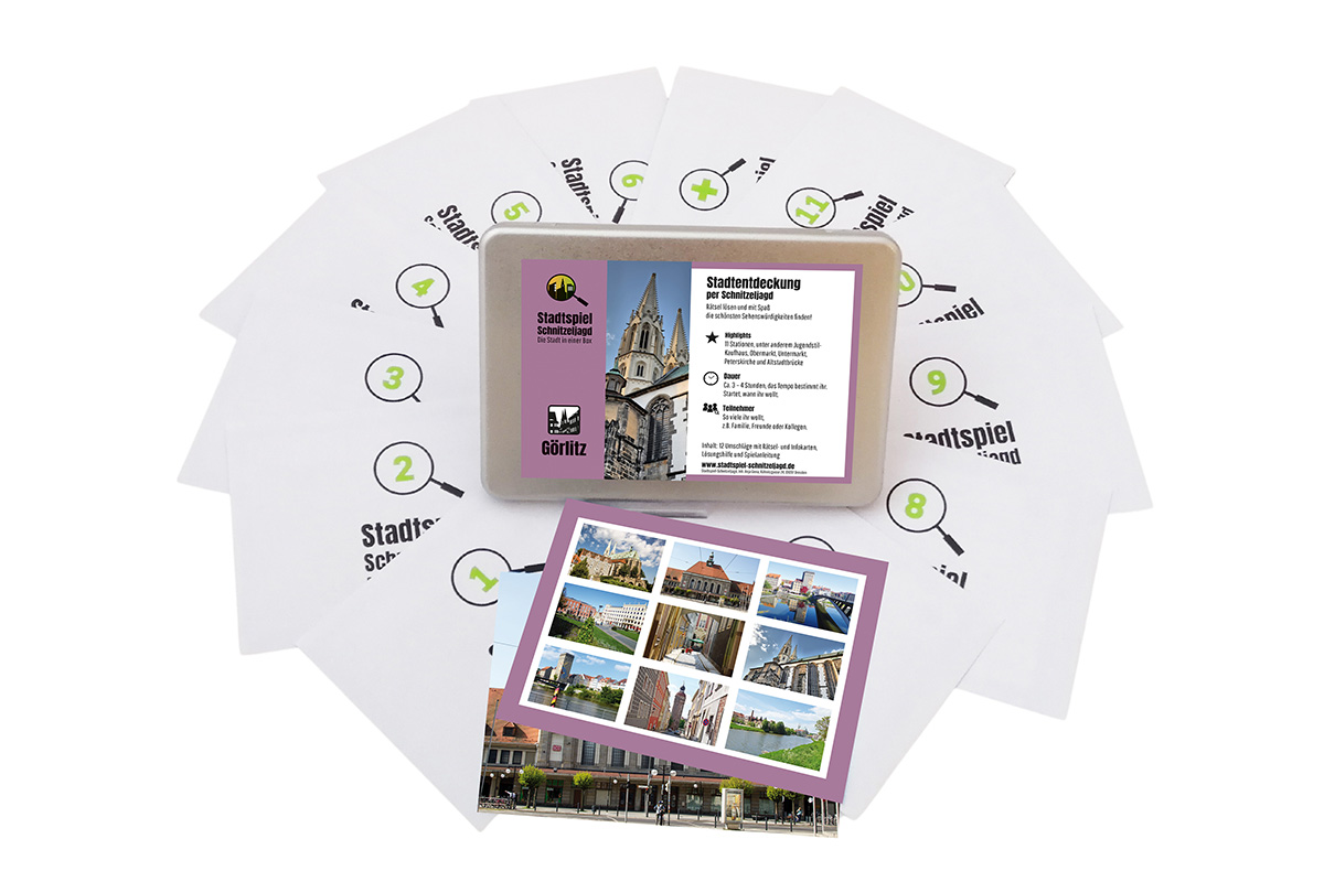 Die Stadtrallye ermöglicht es Dir, die schöne Stadt Görlitz mit Spiel und Spaß zu entdecken und Dich genauer mit ihren Sehenswürdigkeiten zu beschäftigen. Dafür erhältst Du eine Stadtspiel-Box mit 11 Umschlägen, die spannende Rätsel für Dich und Deine Freunde bereithält. Hältst Du bis zum Schluss durch? Sei gespannt, wie viel Spaß ein Städtetrip machen kann!11 Kärtchen – 11 Geheimnisse