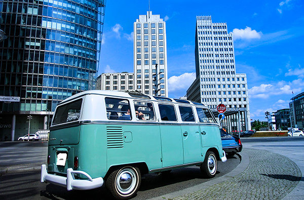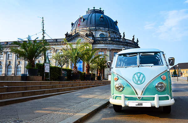Du bist mit Deinen liebsten Reisebegleitern in Berlin? Dann unternehmt zu sechst eine legendäre Stadtrundfahrt im VW Bulli.