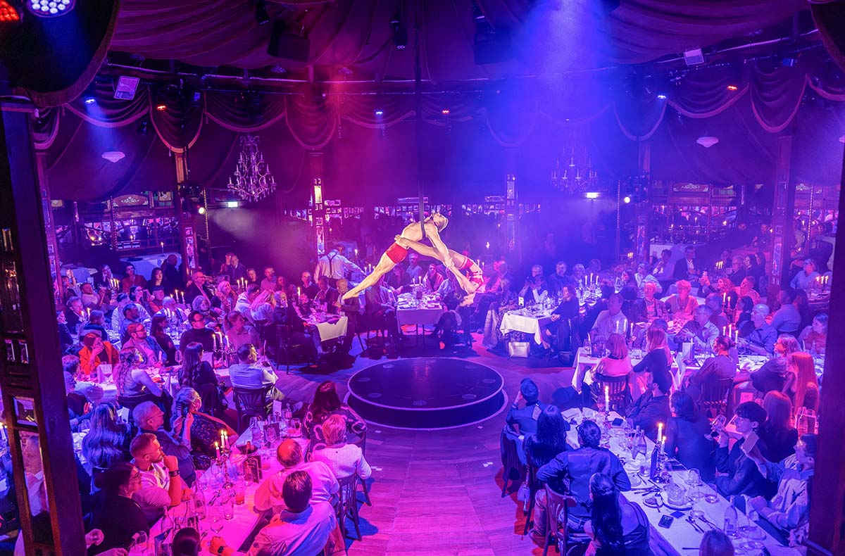 Im stimmungsvoll beleuchteten Spiegelzelt bei der Messe München entfaltet sich ein Abend voller Genuss und Atmosphäre: Die Dinnershow teatro verführt mit feinster Kulinarik von Käfer und eleganter Showkunst in harmonischem Zusammenspiel. Der Romantiktisch – Tageskategorie A – bietet Dir nicht nur einen exklusiven Logenplatz mit freier Sicht auf die Bühne, sondern auch ein stilvolles Ambiente mit Blumen, Pralinen und einem prickelnden Aperitif. Die Sinne werden bei jedem Gang des raffinierten 4-Gänge-Menüs verwöhnt, begleitet von erlesenen Weinen, die das Geschmackserlebnis vollenden. Ein persönliches Erinnerungsfoto hält diesen besonderen Abend fest. Lass Dich verzaubern und genieße Deine Auszeit voller Genuss und Nähe in teatro München.