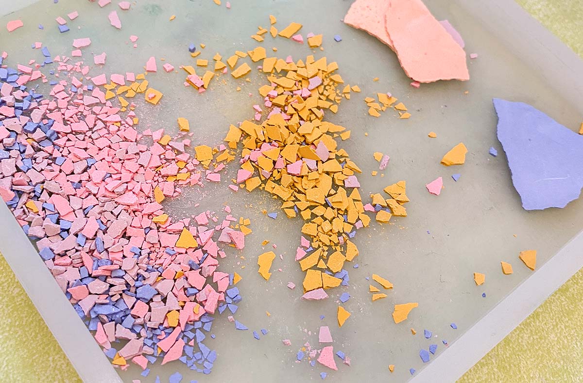 Einführung in die verwendeten Materialien (Keramikgießmasse, Pigmente), Tipps, Tricks und wichtige Hinweise zur Gießtechnik von Terrazzoschmuck