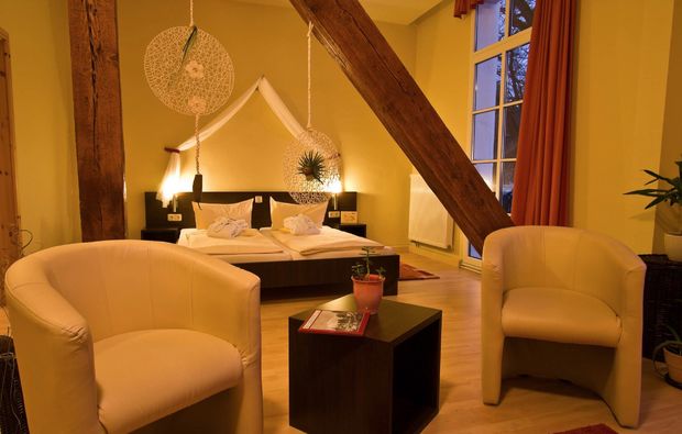 Dann ist das Kulturhotel Kaiserhof genau die richtige Adresse für Deinen unvergesslichen Aktivurlaub. Hier findest Du alles vor, was Du für einen erholsamen Urlaub benötigst und kannst es Dir in der Natur rundum gut gehen lassen. Dafür erwartet Dich während der 2 Tage eine Übernachtung im Doppelzimmer, wo Du Dich nach einem aufregenden und ereignisreichen Tag zurückziehen kannst. Mach es Dir hier bequem und erfreue Dich an dem Obstkorb, der auf Deinem Zimmer bereit steht und Dich mit den nötigen Vitaminen versorgt. Zusätzlich bekommst Du bei Deiner Ankunft ein Begrüßungsgetränk serviert, das nur eine von vielen weiteren Annehmlichkeiten während Deines Aufenthaltes darstellt. Wie wäre es zudem mit einem Besuch der Sauna, wo Du nach Herzenslust schwitzen und die Zeit vergessen kannst? Auch diese Möglichkeit bietet sich Dir während Deiner Auszeit, damit es Dir an so gut wie gar nichts mangelt. Im Wellnessbereich des Hotels kannst Du Dich weiterhin nach Strich und Faden verwöhnen und die Seele baumeln lassen. Genieße die zahlreichen Anwendungen und freue Dich auf Entspannung pur. Damit Du am Morgen dann erfrischt und gestärkt in einen neuen Tag starten kannst, wirst Du von einem leckeren und reichhaltigen Frühstück begrüßt.