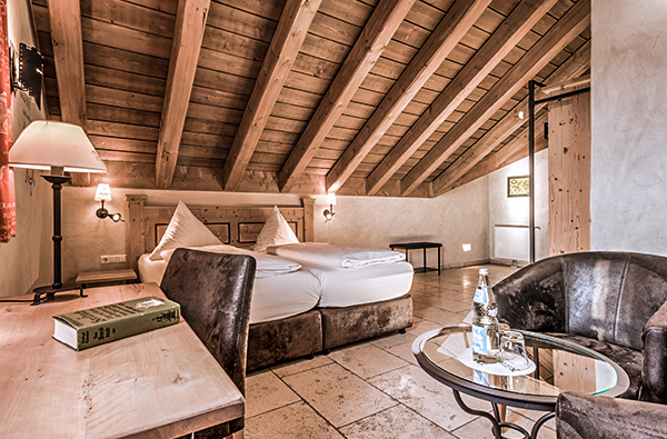In Eurem großzügigen Zimmer angekommen, stellt sich bei Euch sofort ein heimeliges Gefühl ein. Dicke Holzbalken und Böden aus Naturstein vermitteln Euch auch hier die Stimmung einer märchenhaften Ritterburg. Kuschelt Euch in das große Bett und genießt gemeinsam den einzigartigen Blick auf das bezaubernde Städtchen.
