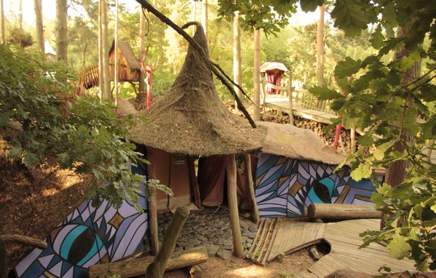 Die Übernachtung ist aber noch lange nicht alles, was Euer außergewöhnliches Hotel für Euch vorbereitet hat. Darüber hinaus erwartet Euch ein sagenhaftes Mitternachtsabenteuer, das so manche Überraschung bereithält. Auch der Spaß kommt bei diesem Erlebnis nicht zu kurz. An die Übernachtungsanlage angeschlossen ist ein Abenteuerfreizeitpark, der sich mit dem Volk beschäftigt, das einst in genau dieser Umgebung gelebt hat – dem Volk von Turisede. Euer außergewöhnliches Hotel versorgt Euch mit Parktickets für den An- und Abreisetag. So könnt Ihr in aller Ruhe eintauchen in die Welt der Turisede und alles über deren Geschichte, Kunst und Kultur lernen.