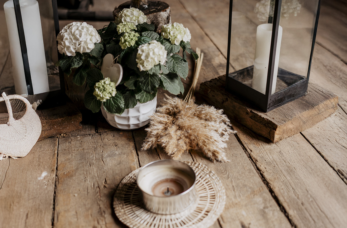 Romantische Atmosphäre mit Kerzenlicht, Blumen und Eurer Lieblingsmusik