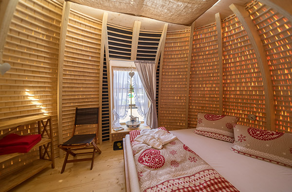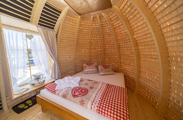 Bedeckt mit traditionellen Schindeln, das Dach zu einer futuristischen Kuppel geformt und rund herum die sanften Hügel der Emmentaler Alpen. Schon der beim ersten Anblick ist klar, diese Unterkunft ist eine ganz besondere. Genießt den herben Holzduft um Euch herum und die romantische Zweisamkeit in diesem kuscheligen Rückzugsort in luftiger Höhe. Das große Fenster gibt den Blick auf die malerische Natur frei und lädt zum Träumen ein. Süße Träume sind hier vorprogrammiert!