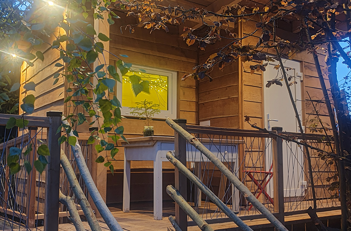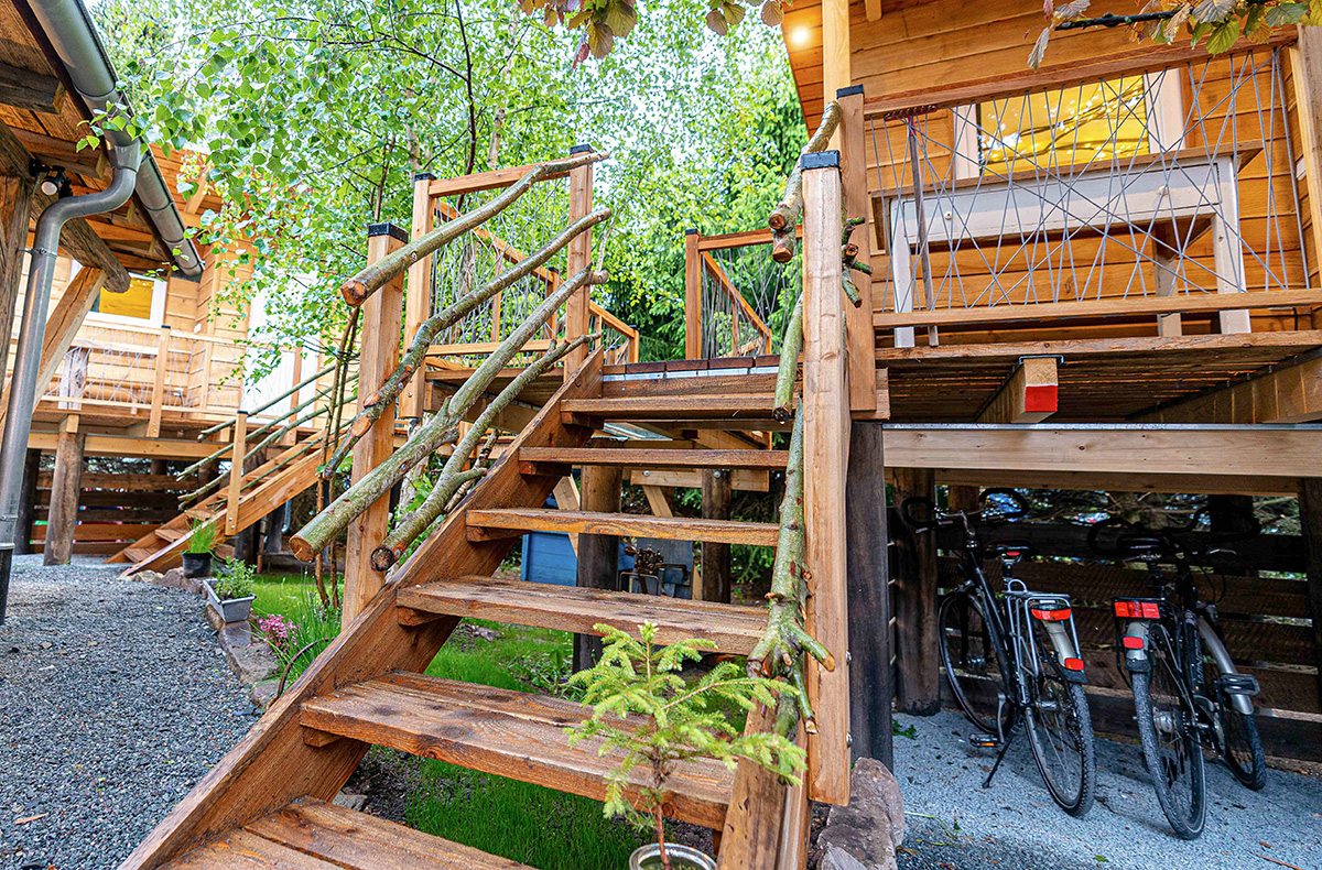 Ihr kommt bei Eurer Unterkunft an und blickt zu Eurem Baumhaushotel nach oben. Einfach der Wahnsinn! Ihr steigt die Treppen zum Baumhaus hoch und werdet beim Öffnen der Eingangstüre überwältigt. In dem traumhaften Baumhaus gibt es allerlei Luxus wie Fußbodenheizung, Minikühlschrank und Bluetooth-Lautsprecher, verbunden mit der rustikalen Optik eines echten Baumhauses. Im separaten und privaten Bad erwartet Euch eine Dusche, die direkt an einer 250 Jahre alten Bruchsteinmauer befestigt wurde. Lasst Euch verzaubern und tretet ein!