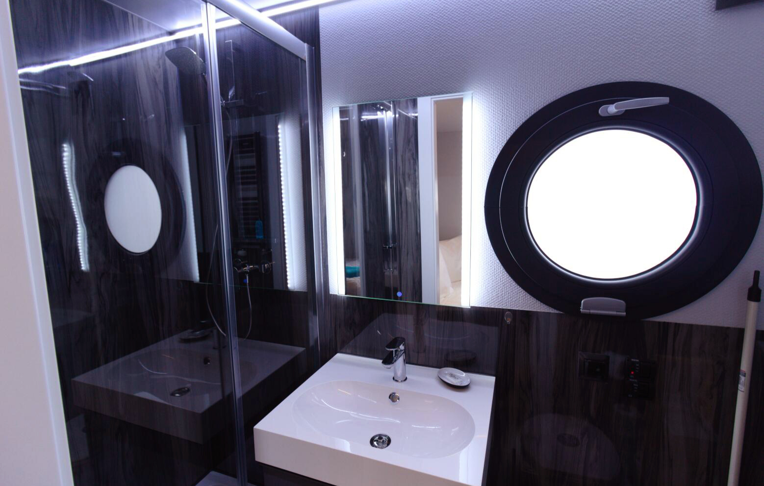 Der offene Grundriss zieht sich über gemütliche 50 Quadratmeter, die Euch alles bieten, was Ihr für behagliche Tage auf See braucht: Bodentiefe Fensterfronten für beste Aussicht bei jedem Wetter, eine vollausgestattete Küchenzeile mit hübschem Essplatz, eine kuschelige Loungeecke, Fußbodenheizung und ein separates Schlafzimmer. Gleich zwei Sonnenterrassen, davon eine auf dem Dach, laden zu trauten Abenden zu zweit bei Sonnenuntergang ein. In der Sauna könnt Ihr Euch derweil bei Schwitzkuren von der Salzwasserluft und der Küstenbrise erholen.