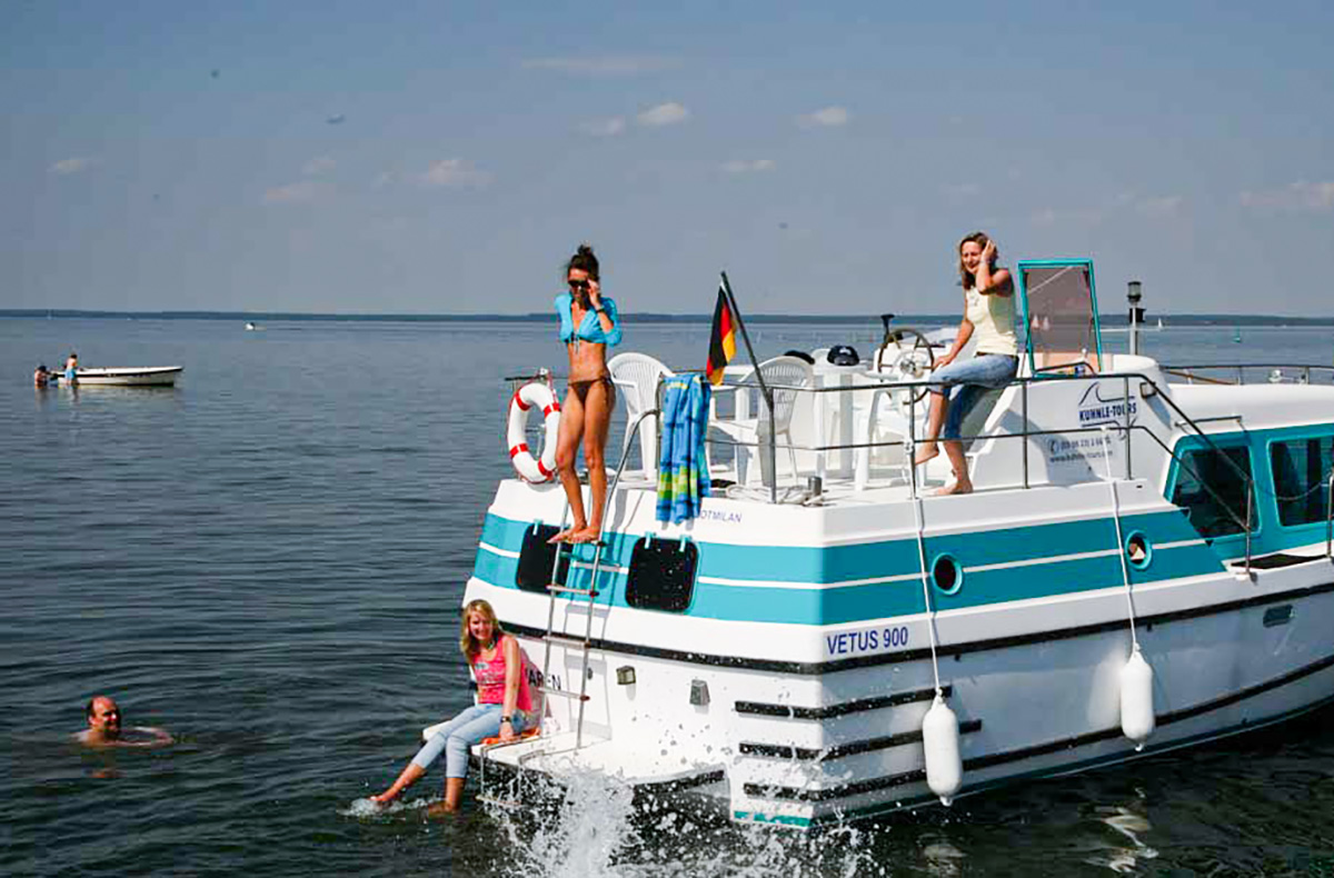 Buche jetzt Deine Hausboot-Übernachtung Rechlin auf der Vetus 900 und genieße die wunderschöne Landschaft. Entfliehe dem Alltag bei einem Urlaub auf dem Hausboot.