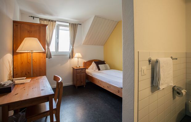 Trittst Du die Reise in die Hotel Pension Villigen an, so erwartet Dich hier eine Übernachtung im Standard-Doppelzimmer. Im Zimmer wartet bereits bei Deiner Anreise eine Flasche Wasser auf Dich. Insgesamt verbringst Du also zwei Tage in der malerischen Landschaft um Villigen und nächtigst eine Nacht in der Hotel Pension Villigen. Nach dieser Nacht kannst Du dank eines vielseitigen und schmackhaften Frühstücksbuffets gestärkt in den Tag starten, die Umgebung erkunden und die bemerkenswerte Ruhe geniessen.