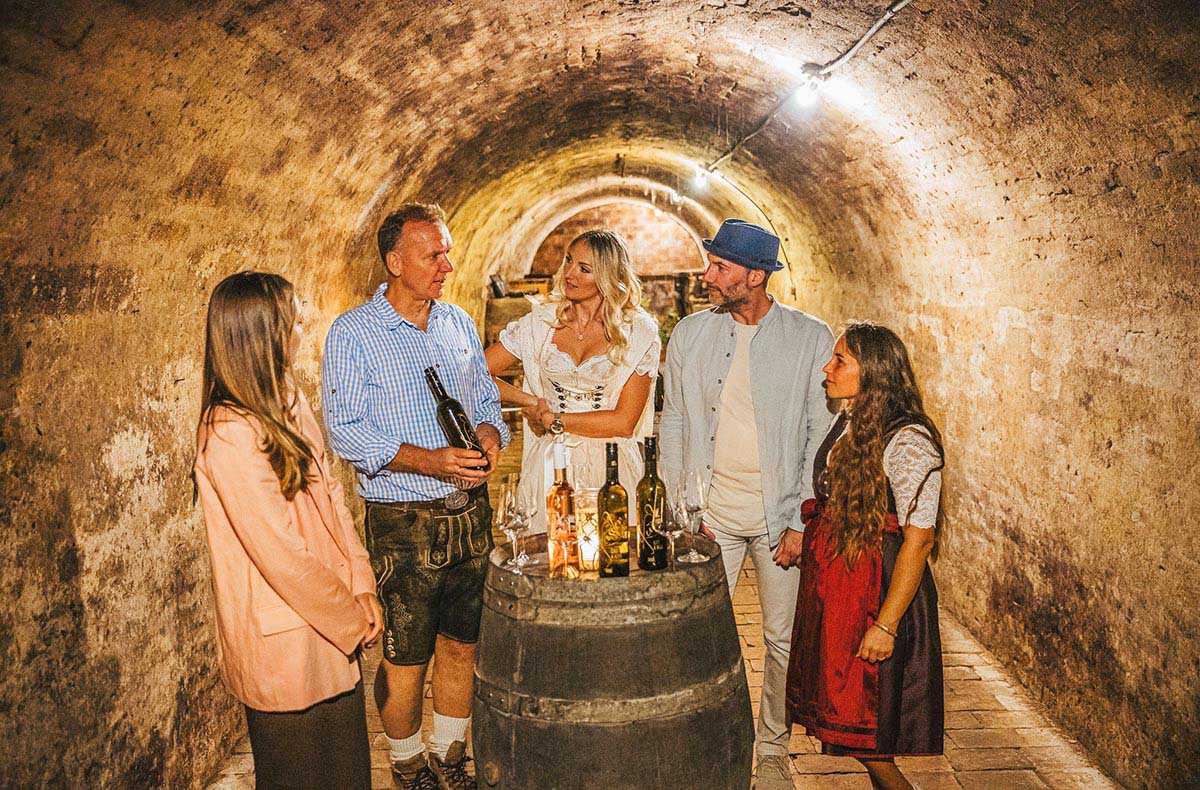 - Weinverkostung im 300-jährigen Kellergewölbe