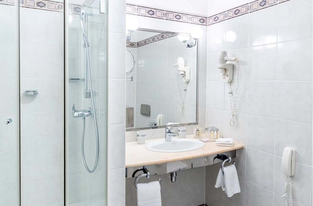 Dusche/WC, Minibar, Föhn, Safe,Sat-TV, Sky, Zubereitungsmöglichkeit für Tee und Kaffee