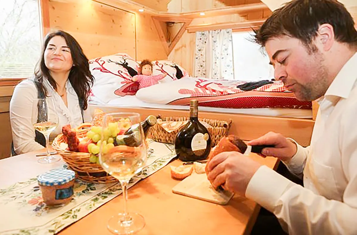 Eure ungewöhnliche Unterkunft wurde mit viel Liebe zum Detail designt, gestaltet und gebaut. Die Innenausstattung verspricht kuscheligen Komfort – das Bett lädt zum Verweilen und Faulenzen ein. Von Eurer Terrasse aus könnt Ihr romantische Sonnenuntergänge sehen, hört den Vögel beim Abendgesang zu und lasst Es Euch gutgehen. Die urig-moderne Unterkunft ist perfekt für Turteltauben, aber auch Freunde werden sich hier wohlfühlen. Nutzt die Lagerfeuerstellen und grillt am Abend zu Zweit oder gesellt Euch zu den anderen Schäferwagen-Bewohnern. Brennholz wird Euch zur Verfügung gestellt.