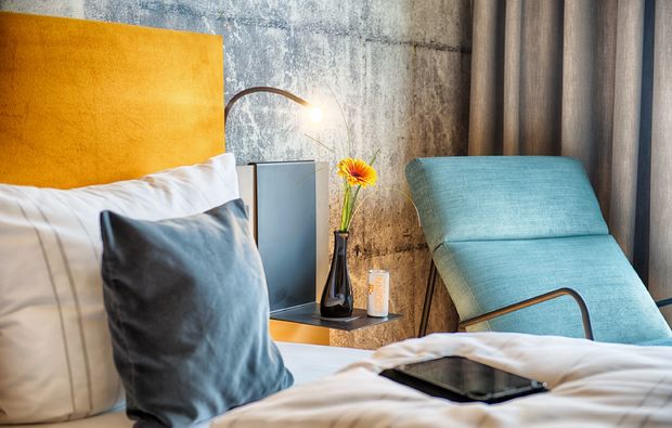 Und das Beste ist: Du wohnst in einem Hotel, das hervorragend an die öffentlichen Verkehrsmittel angebunden ist – so kannst Du alle Ausflugsziele und Sehenswürdigkeiten problemlos erkunden. Doch die sehr gute Lage nahe des Messegeländes ist noch lange nicht alles, was Dein Urlaubsdomizil zu bieten hat – ganz im Gegenteil. Das LOGINN by ACHAT lädt mit seinem modernen und zugleich natürlichen Ambiente zum Wohlfühlen auf hohem Niveau ein. Auf Deinem Kurzurlaub nach Leipzig wohnst Du in einem der komfortablen Doppelzimmer, die neben bodentiefen Fensterfronten auch einen Flachbildfernseher, ein großzügiges Bad und eine kleine Sitzecke bieten. Die vielen Annehmlichkeiten des Hauses, wie das Fitnessstudio oder den Play & Media Corner nutzt Du kostenfrei. Mit Restaurant und Bar genießt Du kulinarische Vielfalt gleich in zwei Bereichen. Das Frühstück versteht sich auf Deinem Kurzurlaub in Leipzig inklusive.