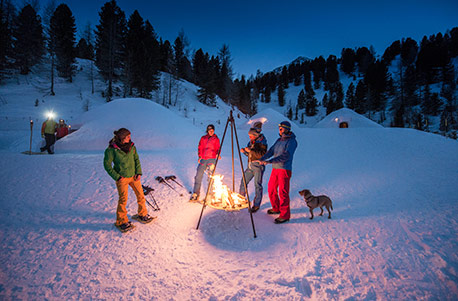Nach Lust und Laune könnt Ihr den Tag bei einer Schneeschuhwanderung, einer Schnupper-Skitour oder einem Wellnessangebot der besonderen Art verbringen. Das Mountain Iglu ist eine wahre Wellnessoase für die Iglu-Bewohner. Eine Sauna sorgt für wohltuende Wärme und Entspannungsmomente inmitten der Schneelandschaft. Ein anschließendes Bad im Zuber sorgt für die wohltemperierte Abkühlung nach Eurem Saunagang. Genau das Richtige um Stunden zu zweit zu genießen und abzuschalten. Mit einem traditionellen Abendessen im Restaurant-Iglu Eures Dorfes könnt Ihr Euren Tag perfekt ausklingen lassen. Der Inuit-Koch bietet Euch eine kleine Auswahl an Südtiroler Spezialitäten und wird Euch mit exklusiven Geschmackserlebnissen verzaubern.