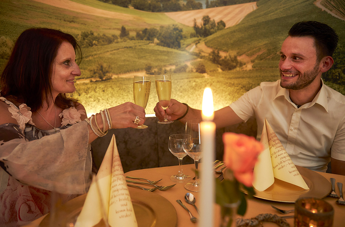 Abends erwartet Euch dann Euer romantisches Candle-Light-Dinner, bei dem Ihr Euch von der hoteleigenen Küche so richtig verwöhnen lassen könnt. Ihr werdet stilvoll mit einem Glas Sekt begrüßt und die Dame erhält außerdem noch eine Rose, so dass gleich zu Beginn die passende Stimmung aufkommt. Nun aber zum Dinner. Wählt zwischen zwei 3-Gänge-Menüs, die mit Liebe und Leidenschaft zubereitet werden und macht Euch beim dem deliziösen Gericht einen schönen Abend zu Zweit.