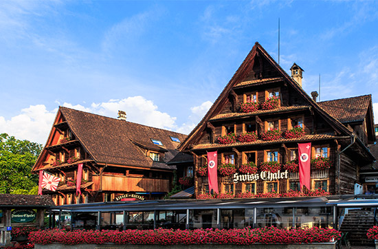 Das Schloss-Hotel ist Teil des Swiss-Chalet Merlischachen, das in den 1950er-Jahren aus einem Provisorium entstand. Die Bewohner des malerischen Örtchens am Vierwaldstättersee merkten damals recht schnell, dass sie sich mit der Aufnahme von Übernachtungsgästen in ihren Bauernhäusern ein wenig dazuverdienen konnten. So wurde mit den Jahren aus dem ursprünglichen Provisorium ein luxuriöses Refugium, in dem es sich hervorragend bei einem Romantikwochenende ausspannen lässt.
