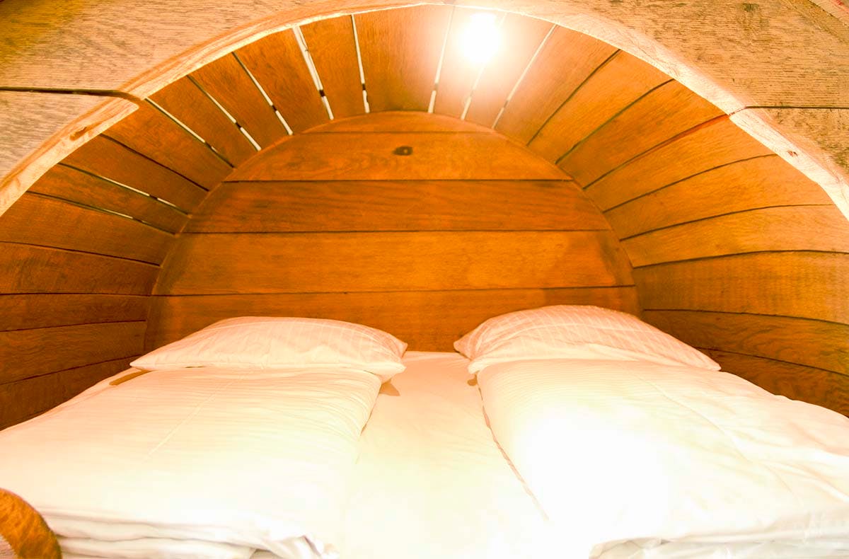 Zwar ist Dein Übernachtungsfass rund, aber dennoch musst Du keine Angst haben, dass Du in der Nacht ins Rollen gerätst. Denn Dein Bierfass befindet sich in einem Themen-Hotelzimmer und ist so gesichert, damit Deine außergewöhnliche Übernachtung für Dich zu einem unvergesslichen Erlebnis mit einer angenehmen Nachtruhe und phantasievollen Träumen wird. Schlummert gemeinsam entspannt in Eurem Bierfass und genießt gleichzeitig den Komfort eines Vier-Sterne-Hotels.