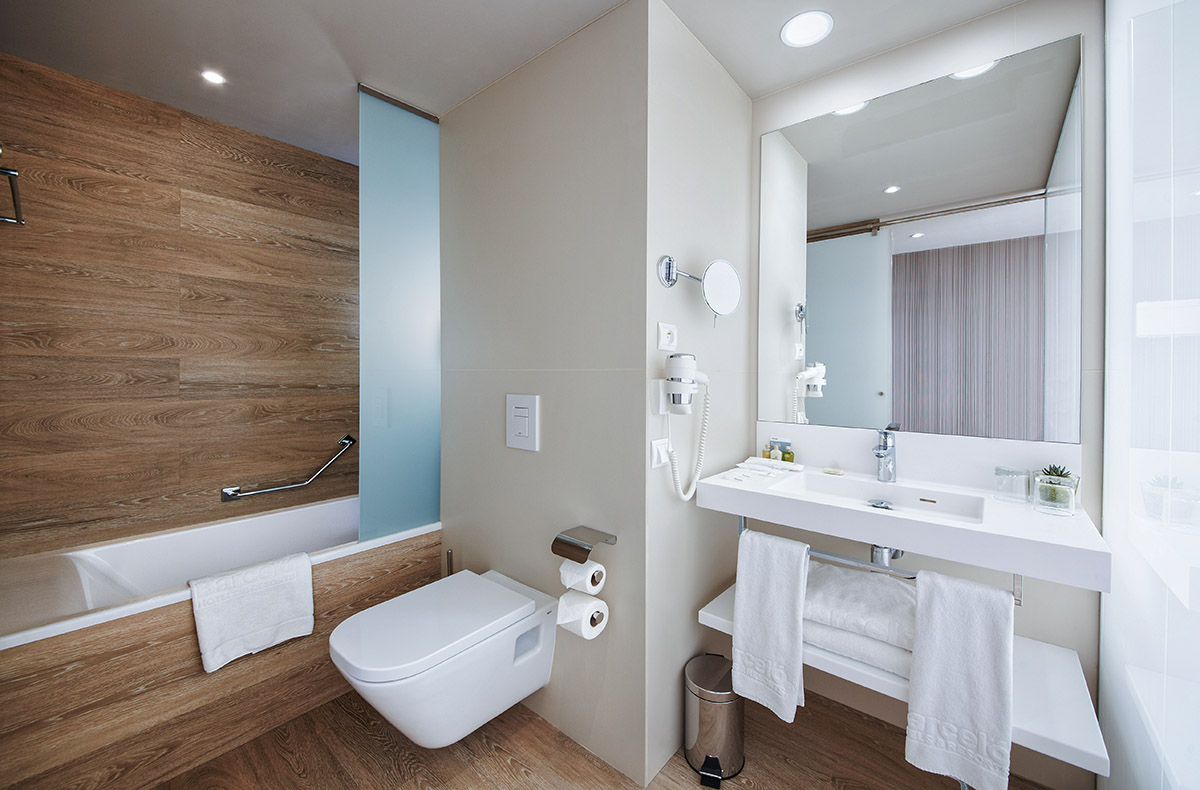 230 Zimmer (2 barrierefrei), Bar, Restaurant, Fitnessbereich, Lift, 24/7 Rezeption, WLAN im gesamten Hotel
