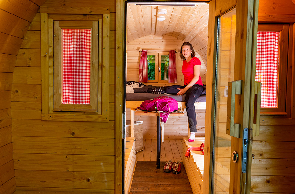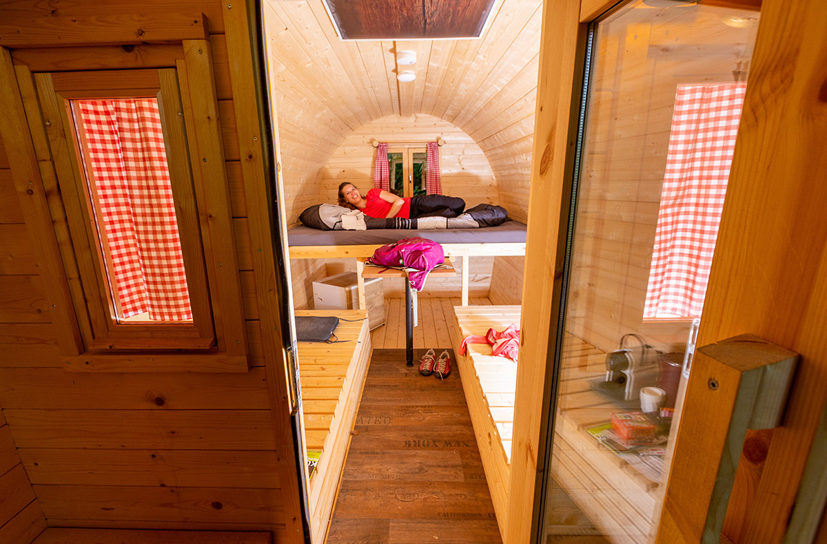 Nach einem ereignisreichen Tag kuschelt Ihr Euch in die flauschigen Decken ein. Die Holzwände und die karierte Bettwäsche machen das schnuckelige Fass zu einer gemütlichen Wohlfühlhöhle. Am nächsten Morgen werdet ihr vom Vogelgezwitscher, dem Rauschen des Wassers und dem sanften Wiehern der Pferde geweckt. Idyllischer geht es kaum!