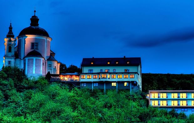 Der Nachmittag steht zu Eurer freien Verfügung. Ihr könnt Euch entweder auf einen Spaziergang in die Stadt Steyr aufmachen, die hoteleigene Felsen-Vital-Oase nutzen oder es Euch in Eurem privaten Reich gemütlich machen. Aber verpasst nicht die süße Überraschung, die Euch das Hotel am Nachmittag zur Verfügung stellt. Vollkommen entspannt treffen Ihr am Abend im Restaurant ein. Dort erwartet Euch ein 4-Gänge Gourmetdinner, das Euch von regionalen Schmankerln bis zur internationalen Küche allerlei Gaumenfreuden bietet. Im romantischen Ambiente lasst Ihr den Abend ausklingen und stoßt nochmals auf einen gelungenen Tag an. Danach genießt Ihr Eure Nachtruhe im luxuriösen Zimmer.