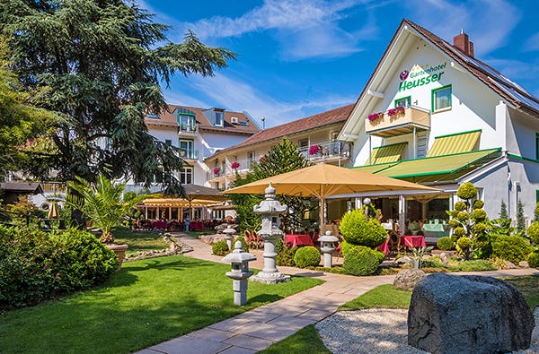 Schöner könnte der Schauplatz für Euer Wohlfühlwochenende kaum sein: Eingebettet in sonnige Weinberge und dem malerischen Pfälzer Wald freut sich das Gartenhotel Heusser darauf, Euch zu einem echten Verwöhnurlaub willkommen zu heißen. Rings um das Hotel erstreckt sich ein weitläufiger asiatischer Garten mit Koi-Teich, Teehaus, Liegewiesen und kleinen Rückzugsorten, der schon ganz dezent erkennen lässt, dass hier alle Zeichen auf Entspannung und Entschleunigung stehen. In dem beliebten Vier-Sterne-Hotel bezieht Ihr eines der großzügigen Komfort-Doppelzimmer.