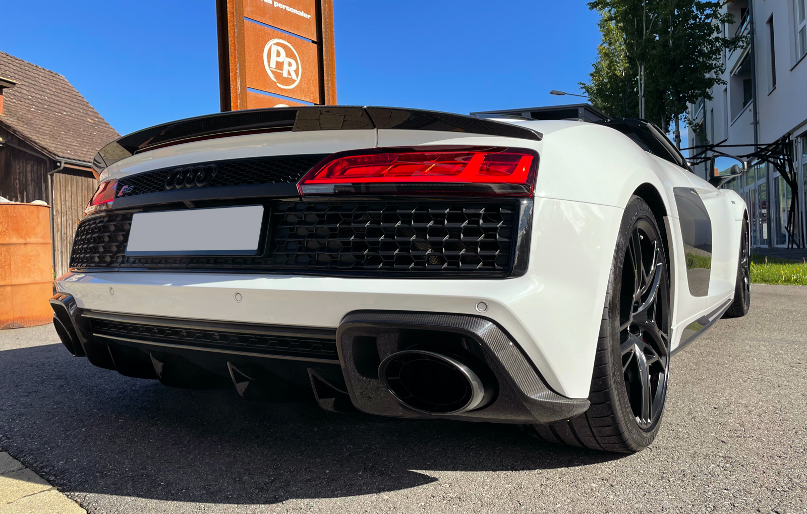 Wenn Du nach einer herzlichen Begrüßung in Au das erste Mal vor dem Audi R8 Spyder V10 Performance stehst, spürst du sofort die Rennsport-Gene, die in dem Athleten aus Ingolstadt stecken. Muskulöse Seitenlinien und ein überbreites Heck: dieser Wagen will zeigen, was er kann.