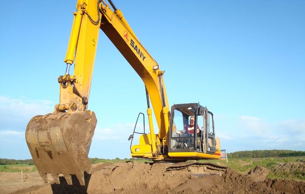 Von einem erfahrenen Baumaschinenführer werden Dir die Funktionen all der Hebel und Knöpfe erklärt. Ruck zuck ist die Maschine in Bewegung und die ersten Schaufeln werden von Dir voll geladen. Je nach Verfügbarkeit kannst Du zunächst ein paar Übungsminuten auf dem Minibagger verbringen, bevor Du in die Champions League des Spassbaggerns aufsteigst - der 21-Tonner! Hiermit lässt sich schon einiges bewegen!