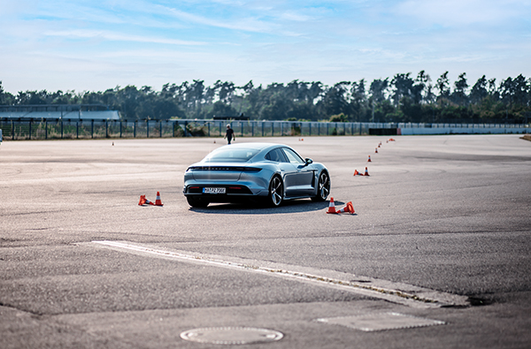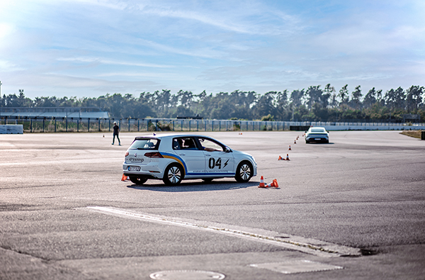 Funkgeräte für die fahrdynamischen Übungen auf der Rennstrecke werden gestellt