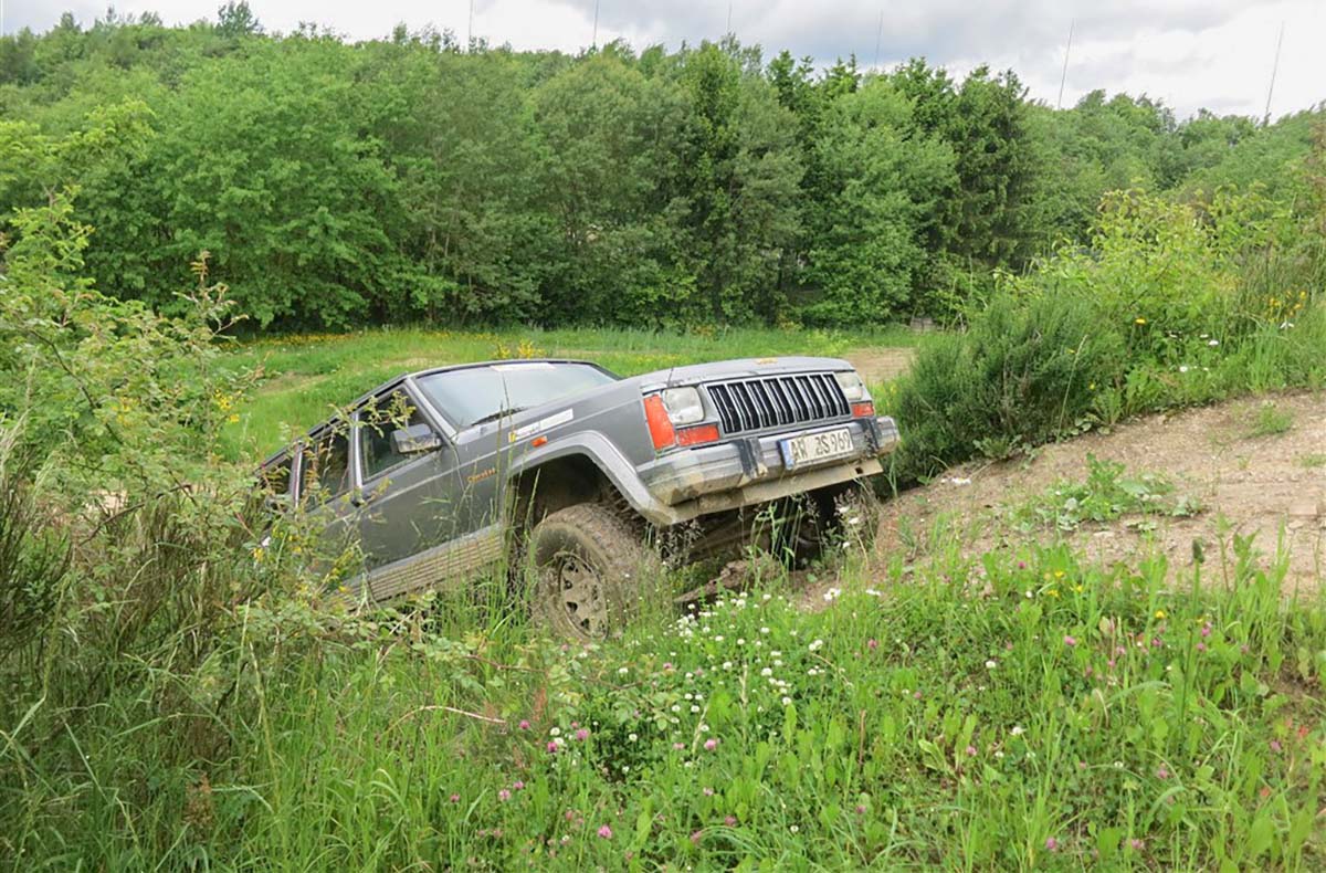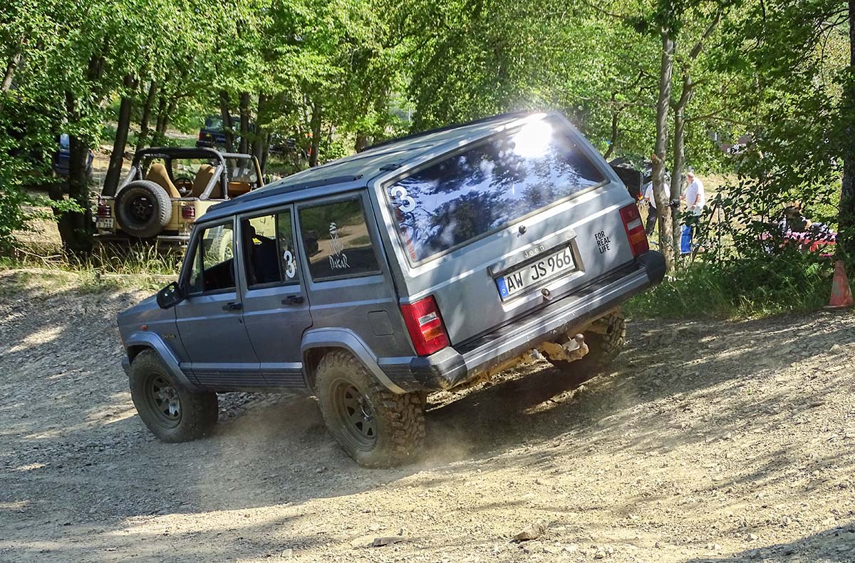 - Gefahren wird mit einem Geländewagen Jeep Cherokee XJ