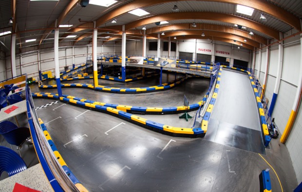 Ihr habt Euch für ein ganz besonderes Erlebnis entschieden, denn es geht nicht um das Kart fahren allein. Eure Herausforderung: Seid beim Kart fahren in Würzburg in Eurer halbstündigen Fahrt schneller als der jeweils andere! Auf der 300 Meter langen Indoor-Strecke warten zwei Ebenen, die mit einer Rampe verbunden sind, auf Euch. Schwierige Kurven, kurze Geraden und steile Rampen stellen Eure Geschicklichkeit auf die Probe. Beim Zeitfahren sind zusätzlich Präzision in den Kurven und Eure Performance besonders wichtig. Für Überholmanöver stehen Euren E-Karts pro Minute drei Sekunden lang 30% Zusatzleistung zur Verfügung. Wer am Schluss das beste Gesamtpaket auf die Strecke bringt, gewinnt die Challenge!