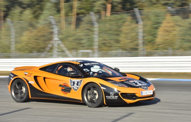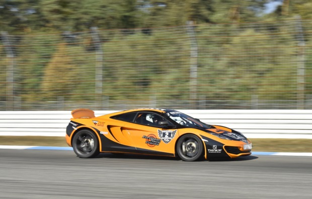 Sturmhaube über den Kopf ziehen, Helm drüber und rein in die Rennhandschuhe. Du steigst auf der Beifahrerseite des superflachen und leuchtend orangen McLaren MP4-12C ein. Der Schalensitz umfasst Dich wie ein passgenauer Mantel. Mit einem hörbaren Klick rastet Dein Renngurt im Verschluss ein. Kurzer Blick-Kontakt mit Deinem Chauffeur, ein Druck auf den Startknopf – Wumm! Ohrenbetäubend dröhnt der Bi-Turbo-Mittelmotor hinter Dir. Jetzt gibt es kein Halten mehr! In 3,3 Sekunden pulverisiert der McLaren die 100 km/h-Marke und nagelt Dich in Deinem Sitz fest. Die erste Kurve. Dein Herz pocht heftig in Deiner Brust. Warum bremst der nicht? Dann steigt Dein Fahrer – scheinbar viel zu spät - doch noch in die Eisen. Die Verzögerung ist brachial. Die folgende Querbeschleunigung lässt Dich glauben, Du wärst in einer Zentrifuge. Jetzt über die Kuppe. Puh, so ein Bauchkribbeln hast Du noch nie gehabt. Wenn Du nach zwei Runden abgekämpft und überglücklich aus dem McLaren steigst, weißt Du, dass Du diesen Ritt auf der Rasierklinge niemals vergessen wirst.