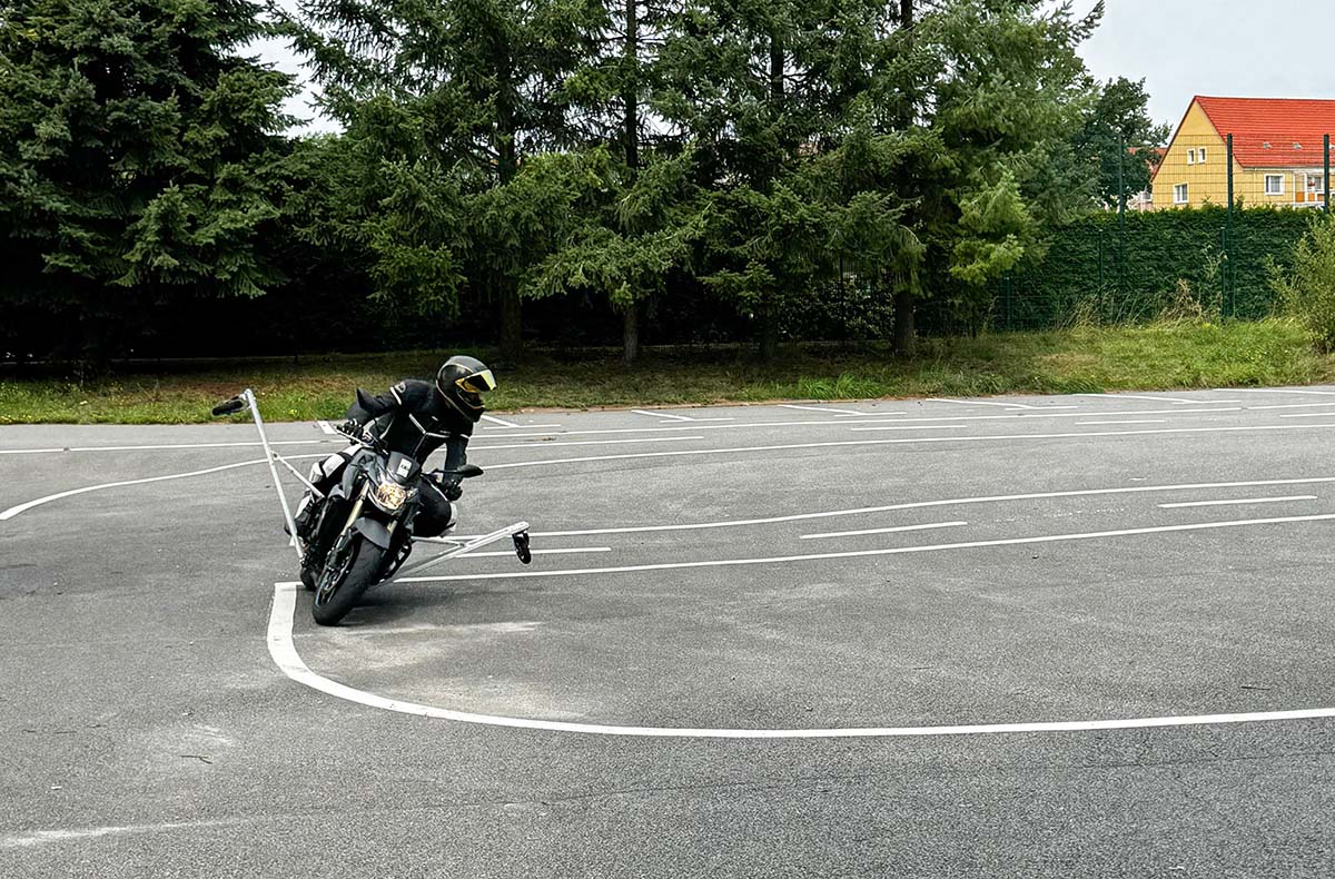 • Schräglagen ohne Sturzrisiko dank speziellem Motorrad mit Stützrädern