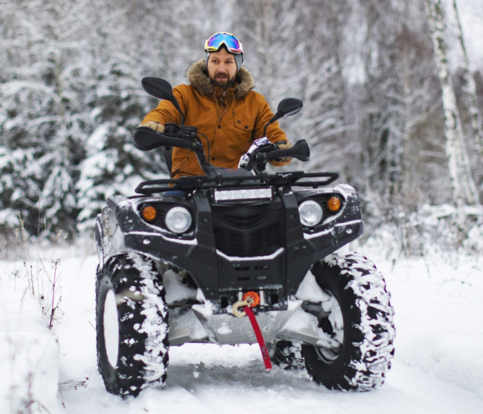 - Schutzausrüstung für das Quadfahren (Helm & Sturmhaube, Schutzbrille, Handschuhe)