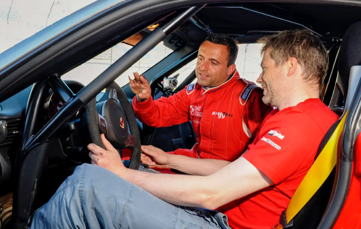 - Rundenanzahl: 2 Runden als Co-Pilot in einem der 3 Sportwagen, je 2 Runden 3 Sportwagen selbst fahren