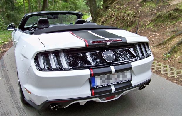 Fahrt in einem Ford Mustang GT Cabriolet verfügbar von Fr. - So. (Farbe des Fahrzeugs kann variieren)