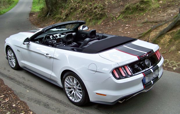 Fahrt in einem Ford Mustang GT Cabriolet verfügbar von Fr. - So. (Farbe des Fahrzeugs kann variieren)