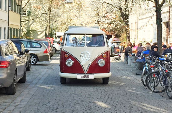 Bulli fahren in München ist ein echtes Nostalgie-Erlebnis. Schon beim ersten Anblick wirst Du begeistert sein. 1950 rollte der sympathische Bus erstmals vom Band und hat seitdem zahlreiche Generationen geprägt. Doch nicht nur von außen sieht Dein Bulli traumhaft aus: Mit sage und schreibe 21 Fenstern ist auch von innen für guten Aussichten auf die Münchner Innenstadt gesorgt. Also, rein in die VW-Legende und losfahren! Bei gutem Wetter noch das Fenster runter kurbeln und dann die Nase in den Fahrtwind strecken.