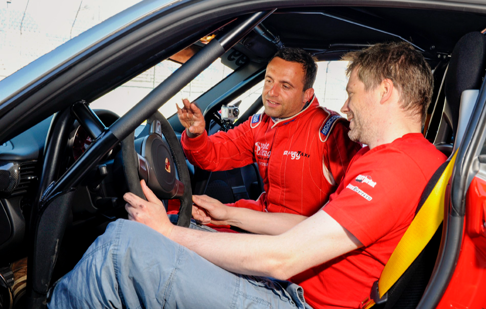 Mit einer Leistung von 430 PS schafft es der Porsche 911 GT3 in 4,2 Sek von 0 auf 100 km/h. Die Spitzengeschwindigkeit des Rennboliden beläuft sich dabei auf unglaubliche 330 km/h! Und dann stehst Du vor ihm. In dem Renn-Overall kommst Du Dir vor, wie ein echter Rennfahrer. Ein erfahrener Rennwagenpilot gibt Dir eine kurze Einweisung in den Porsche und fährt auch die ersten 2 Runden. Schon auf dem Beifahrersitz spürst Du, wie sich das Adrenalin in Deinem Körper ausbreitet.