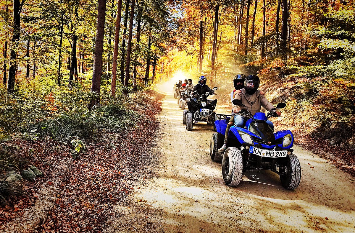 Der Schlamm spritzt im hohen Bogen zur Seite, das Motorengeräusch rauscht in Deinen Ohren und der Fahrtwind bläst Deine Haare nach hinten – so sieht ein adrenalinhaltiges Abenteuer für echte Kerle und toughe Damen aus! Dein Puls beginnt schon zu steigen? Beim Quad fahren in Geisingen erlebst Du genau das. Für circa drei Stunden wirst Du bei diesem einzigartigen Event zum Herr über eines der speziell für Offroad-Zwecke konzipierten Funfahrzeuge, das dank erhöhter Bodenfreiheit besonderen Fahrspaß verspricht.