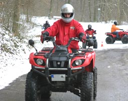 Nach der gegenseitigen Vorstellung der Teilnehmer sowie der obligatorischen Technik- und Sicherheitseinweisung steht Deinem Quad-Abenteuer nun nichts mehr im Wege. Voller Vorfeude ergreifst Du den Lenker Deines Quads und absolvierst die ersten Fahrübungen. Anschließend steuerst Du unter der Leitung Deines ortskundigen Instruktors durch die raue Winterlandschaft.