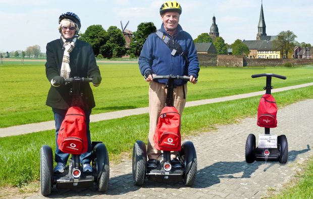 Wenn Du gerne Sightseeing betreibst, aber dieses einmal anders erleben willst als mit den üblichen Verkehrsmitteln oder gar zu Fuß, dann kannst Du Dich bei der Segway Tour in Dormagen-Zons auf ein außergewöhnliches Erlebnis freuen, das Du so schnell nicht wieder vergisst. Dein Sightseeing der etwas anderen Art beginnt mit einer professionellen Fahreinweisung in das moderne Gefährt. Dabei erläutert Dir der Tourguide, worauf es beim Fahren ankommt und wie Du Deinen Körper als Hilfsmittel benutzt, um das Tempo zu variieren und die Richtung zu verändern. Bei der Segway Tour in Dormagen-Zons wird Dir der Segway gestellt, sodass Du Dich gänzlich auf dieses unvergessliche Erlebnis freuen kannst. Schon bald genießt Du den unbändigen Fahrspaß und bist mit den Raffinessen genügend vertraut, um zu der geführten Segway Tour aufzubrechen, welche von einem ortskundigen Instruktor geführt wird. Dein Ziel ist die Zollfeste Zons, wobei Dich der Weg vom Startpunkt aus über Felder und durch Wälder führt, deren Anblick Du mit allen Sinnen genießen kannst, während Du mit dem Segway dahingleitest. Während Deiner Fahrt gibt es so einiges zu entdecken, weshalb die zwei Stunden Dir ganz besondere Momente bereiten, die Du nicht mehr missen möchtest. Am Ziel angekommen, folgt die Besichtigung der Zollfeste Zons. Dabei versorgt Dich der Tourguide mit allerlei spannenden Informationen, die Dir einen neuen Blickwinkel auf dieses imposante jahrhundertealte Gemäuer gewähren. Hier wird Geschichte lebendig, sodass Deine Segway Tour in Dormagen-Zons vielfältige und aufregende Facetten für Dich bereithält. Nach der Besichtigung trittst Du dann so langsam wieder den Rückweg an und kannst dabei die zahlreichen Impressionen noch einmal Revue passieren lassen. Diese Kombination lässt Dich voll auf Deine Kosten kommen und bietet Dir alles, was Dein Herz begehrt für aufregende Stunden voller einzigartiger Momente. Lass die Vergangenheit auf die Moderne treffen und erlebe ein etwas anderes Sightseeing bei der Segway Tour in Dormagen-Zons.