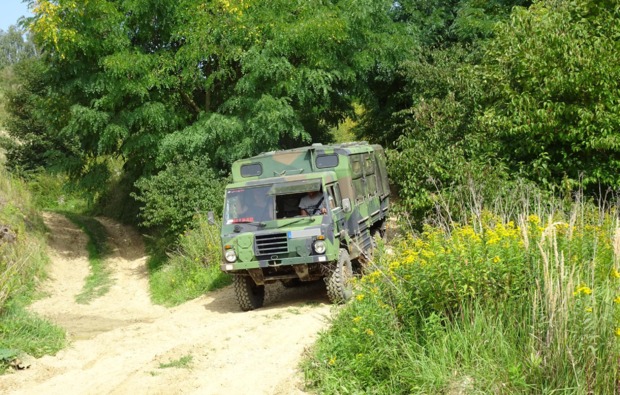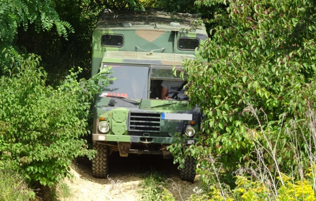 Ein exotischer Mix aus LKW, Militärfahrzeug und Jeep: Mit dem Volvo Lappländer navigierst Du ein außergewöhnliches Gefährt! Offroad-Vergnügen ist beim Geländewagen fahren in Großmehring, bei Ingolstadt, garantiert.