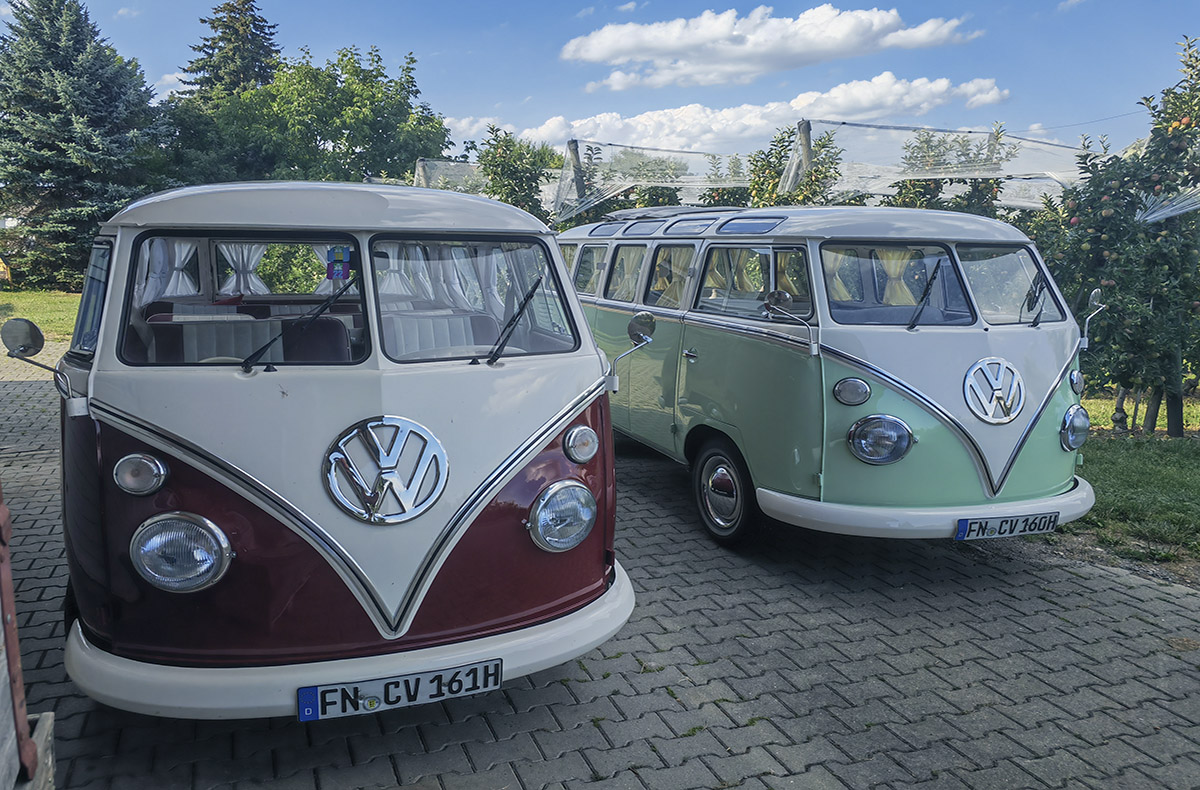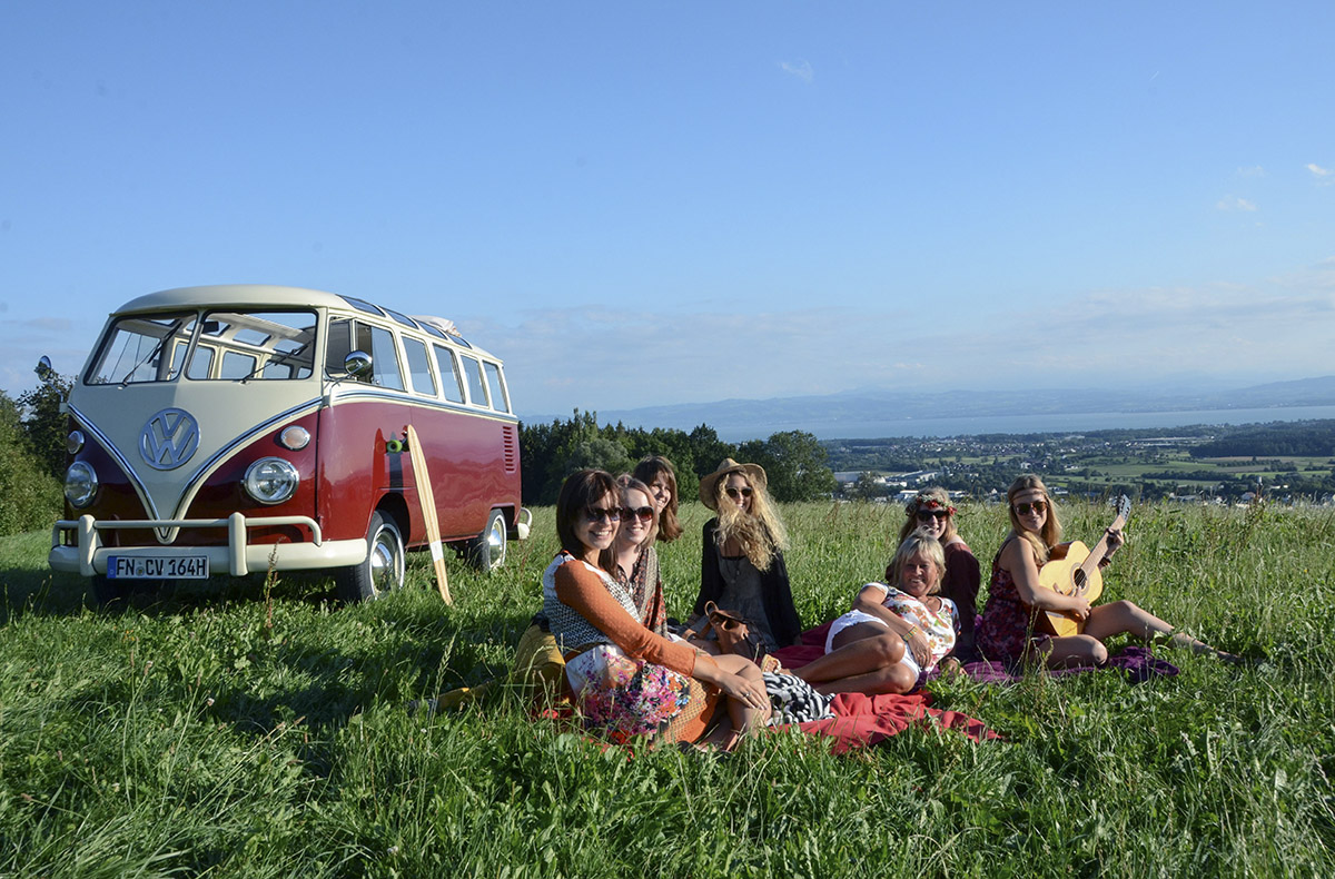 Der Retro-Bus ist ein wahrer Hingucker auf der Straße! Seit seiner ersten Produktion im Jahr 1950 fasziniert der einzigartige Bulli bis heute Sammler und Auto-Liebhaber gleichermaßen. Die auffälligen Farben und die charmante Form zaubern jedem ein Lächeln ins Gesicht. Genießt gemeinsam in dem Reisemobil die ausgelassene Atmosphäre und die atemberaubende Aussicht auf die Region am Bodensee.