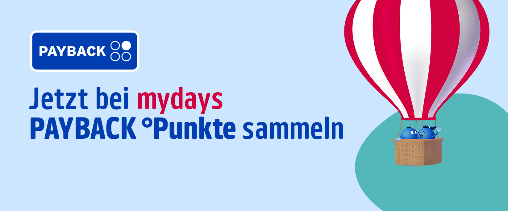 Mit PAYBACK, Deutschlands größtem Bonusprogramm, kannst du mit jedem Einkauf bei mydays und vielen weiteren Partnern ganz einfach wertvolle °Punkte sammeln. Diese °Punkte kannst du dann in Prämien, Gutscheine und vieles mehr einlösen!