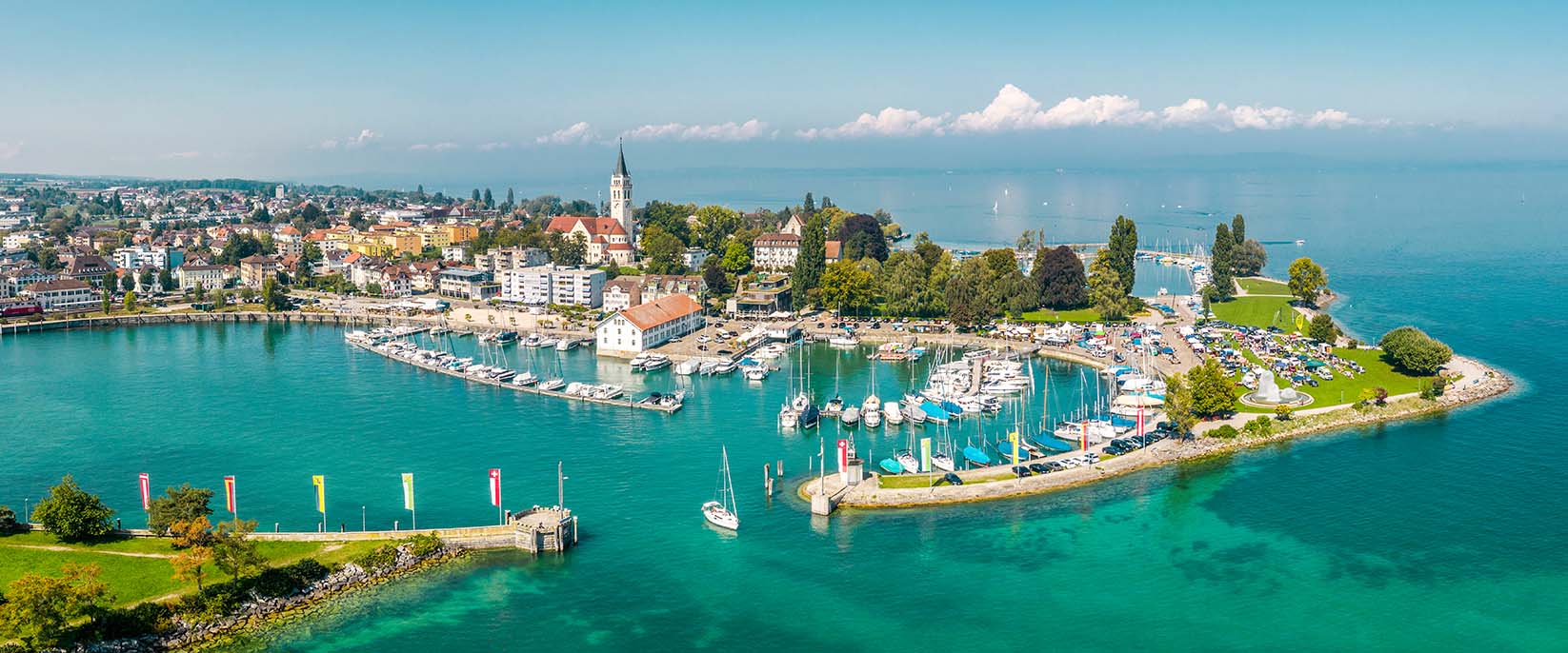 Viele Leute halten den Bodensee für den größten See Deutschlands. Das ist aber nur bedingt richtig, denn ein Teil des Gewässers gehört zur Schweiz und ein anderer schwappt in den äußersten Zipfel von Österreich. Wer sich also in einem Wellness Hotel am Bodensee aufhält, kann ohne weiteres übers Wasser in gleich zwei andere Länder reisen. Solltest Du oder die von Dir Beschenkten einmal das Hotel verlassen wollen, bietet sich eine Bootstour an. Dabei kannst Du die beiden südlich angrenzenden Länder besuchen und Dir die Landschaft rund um den Bodensee aus einem anderen Blickwinkel ansehen. Außerdem gibt es im Bodensee eine kleine Insel, die sich Mainau nennt und als eine Art botanischer Garten genutzt wird. Dort findest Du viele verschiedene Pflanzenarten, die zu Kunstwerken und Skulpturen geformt sind und besonders im Sommer in prächtigen Farben erblühen. Von mehreren Seiten aus gibt es Fähren, die jeweils ans andere Ende des Sees fahren, so dass Du beispielsweise vom Hotel aus einen Tagesausflug in die Schweiz oder nach Österreich unternehmen kannst.