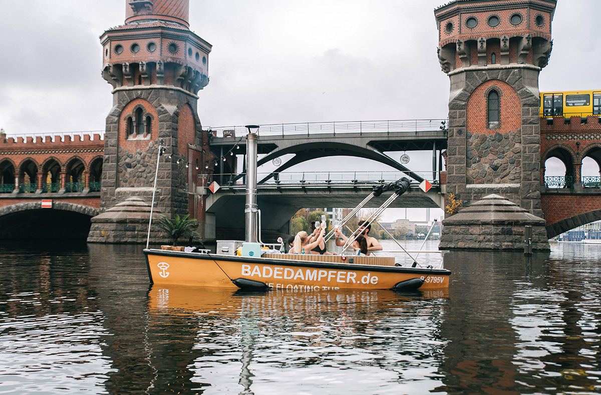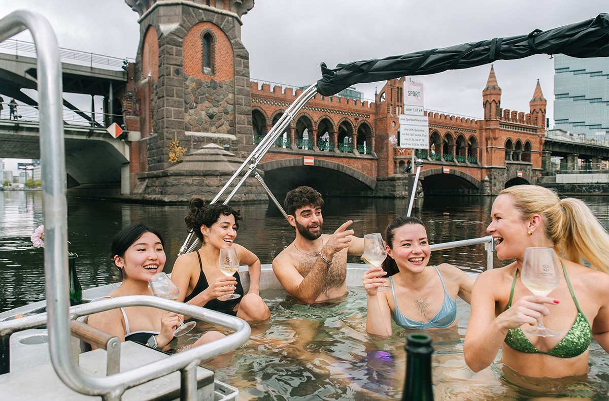Entdeckt Berlins erste schwimmende Badewanne und genießt wertvolle Zeit mit Eurem Lieblingsmenschen. Der stilvolle Badedampfer bietet Euch ein romantisches Ambiente mit Rosenblättern und Kerzen, das Euch in eine Welt des Wohlbefindens entführt. Ob Sommer oder Winter, pures Vergnügen ist garantiert!