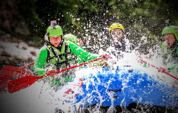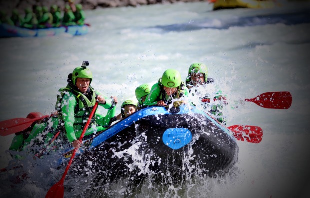 Keine Zeit zum Durchatmen! Gleich geht es mit der nächsten Riesengaudi weiter. Du gehst zum Raften. Rafting - mittlerweile ein Tiroler Volkssport auf dem Inn und durch die Imster Schlucht! Rein in den Neopren, rein ins uns Auto und los! Du fährst zur Einstiegstelle und erhältst eine professionelle Einweisung, wie man paddelt, das Boot lenkt und sicher darin sitzt. Genug geredet, jetzt geht’,s los!