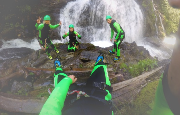 Canyoning - in der Fachsprache auch "Schluchteln" genannt! Du triffst Dich zuerst mit Deinem staatlich geprüften Canyoningguide und den anderen Teilnehmern. Nach der lockeren Begrüßungsrunde wirst Du in Deinen Neoprenanzug eingekleidet und erhältst die weitere Ausrüstung. Nachdem Du perfekt eingekleidet bist, fahr Ihr gemeinsam zur Einstiegstelle. An der Startstelle angekommen erhältst Du eine Sicherheitseinweisung und auf los geht´s los. Dann heißt es: Rein in´s Wasser und Vergnügen...
